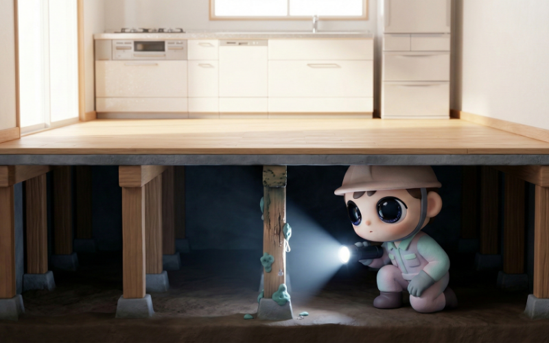 さらに恐ろしいのは、木材を腐らせる「腐朽菌」の繁殖です。これにより、家を支える土台や柱の強度が低下し、最悪の場合は地震などの揺れに耐えられなくなってしまいます。また、湿気を好むシロアリにとって、管理されていない床下は絶好の住処です。定期的な床下点検は、いわば建物の「人間ドック」。大きな病気になる前に、小さな予兆を見つけ出すために不可欠な行為なのです。