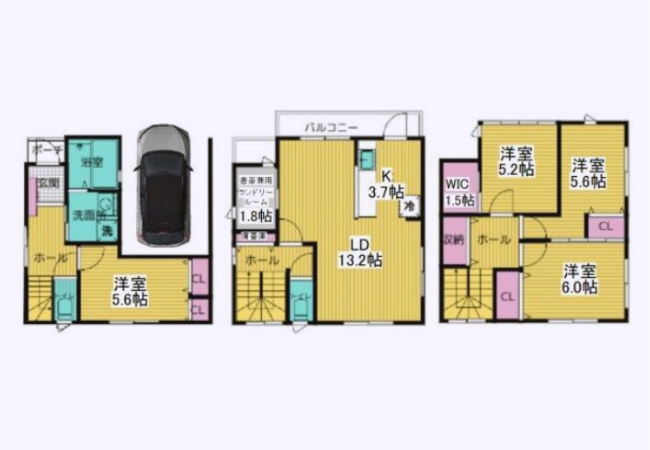 家族構成の変化にも対応できる、ゆとりの4SLDKこの物件は、部屋数が多く収納も豊富な4SLDKの間取りが特徴です。1階には書斎や趣味の部屋としても使えるサービスルーム、3階には3つの洋室と2つのウォークインクローゼットを配置。