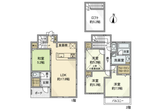 さらに、季節ものやかさばる荷物の収納に重宝する約5.2帖の広々としたロフトも備わっています。