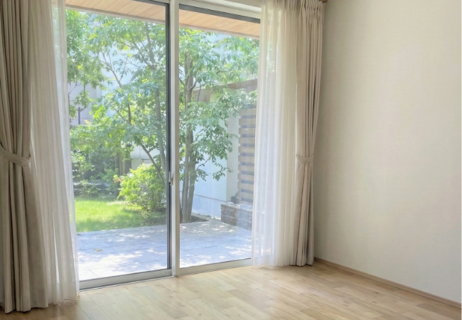 1階のLDKは約16帖あり、南向きの大きな窓からは明るい日差しが差し込みます。