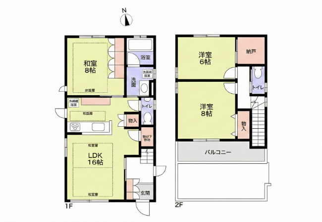 2階には納戸もあり、季節物の収納にも困りません。また、トイレは1階と2階の2箇所に設置されており、忙しい朝もスムーズ。
