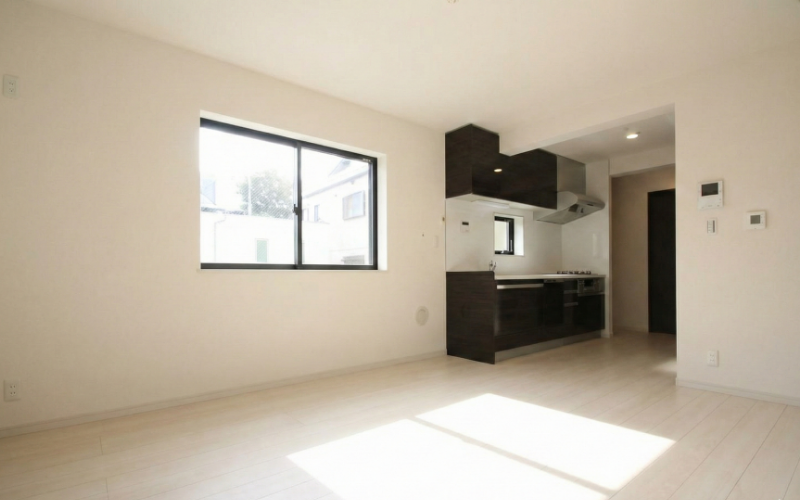 LDKは約12.4帖。2階に配置されているため、通りからの視線を気にすることなくリラックスできます。