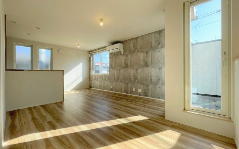 2階に配置されたLDKは約15.5帖の広さがあり、南東向きのバルコニーに面しているため陽当たりが良く、明るく開放的な空間です。