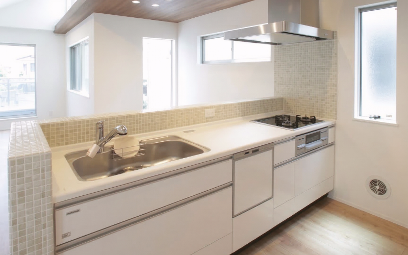 キッチンはリビングを見渡せる人気のカウンターキッチンを採用しています。お料理中もご家族とのコミュニケーションがとりやすい設計です。