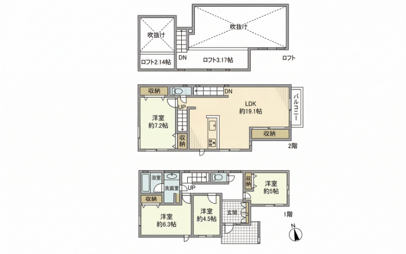 2階に配置されたLDKは約19.1帖というぜいたくな広さを確保しています。