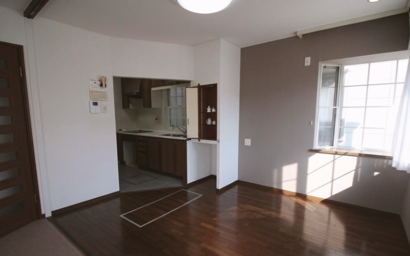 1階にあるLDKは約15.5帖の広さがあり、南向きで陽当たり良好です。