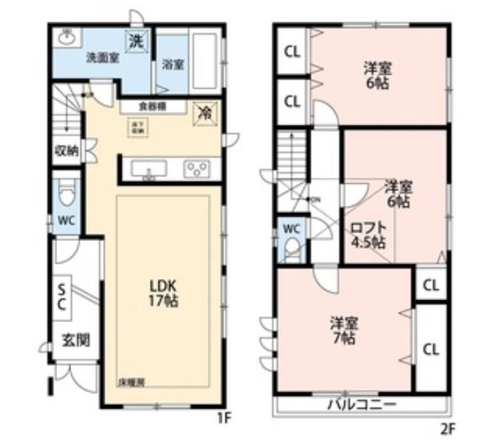 3LDK( LDK17畳(1階)/洋室7畳(2階)/洋室6畳(2階)/洋室6畳(2階) ) |